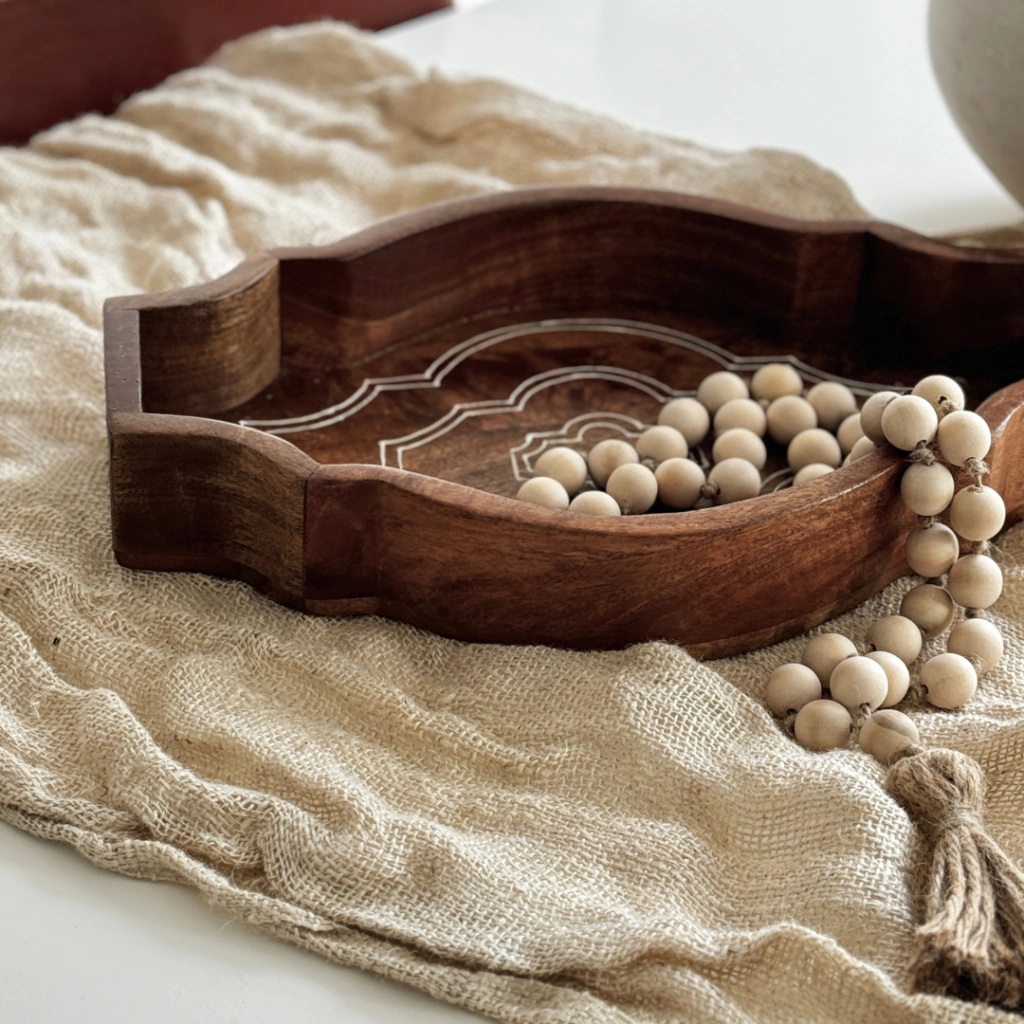 Descubrí nuestra bandeja Túnez de madera maciza con dibujos hechos a mano.