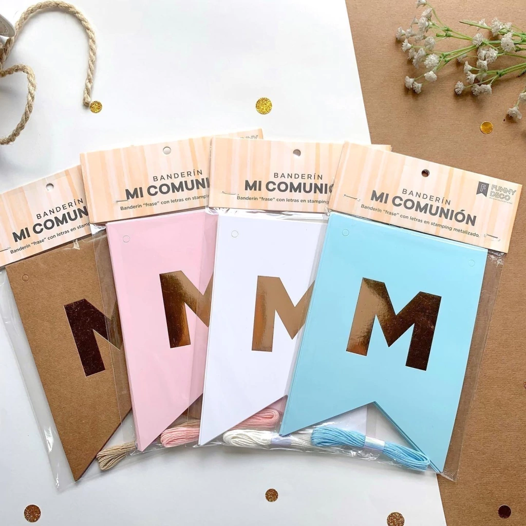 Banderín frase con letras en Stamping dorado.Incluye hilo para colgar.NOTA: Este producto tienen entrega inmediata!
