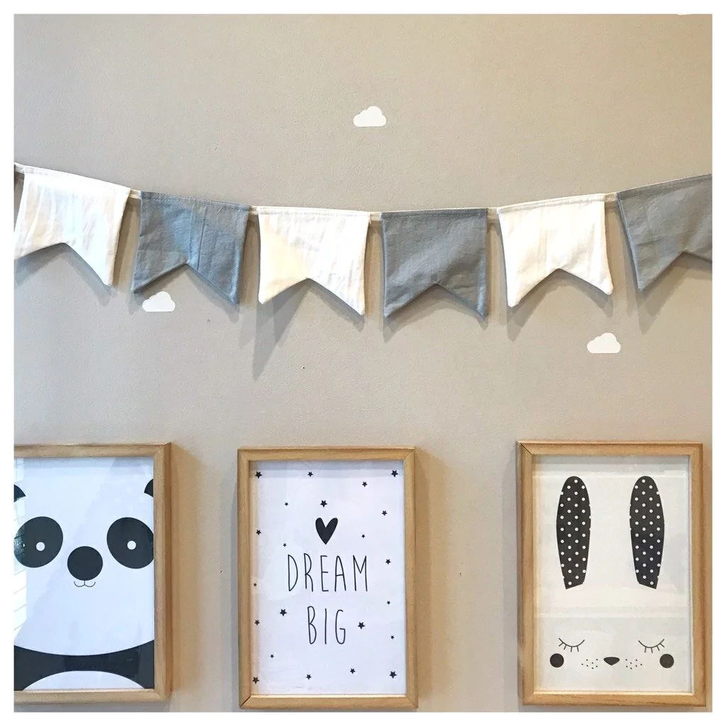 Banderín Tussor gris y blancoMedida: 170cm9 banderinesColor: Gris / Blanco