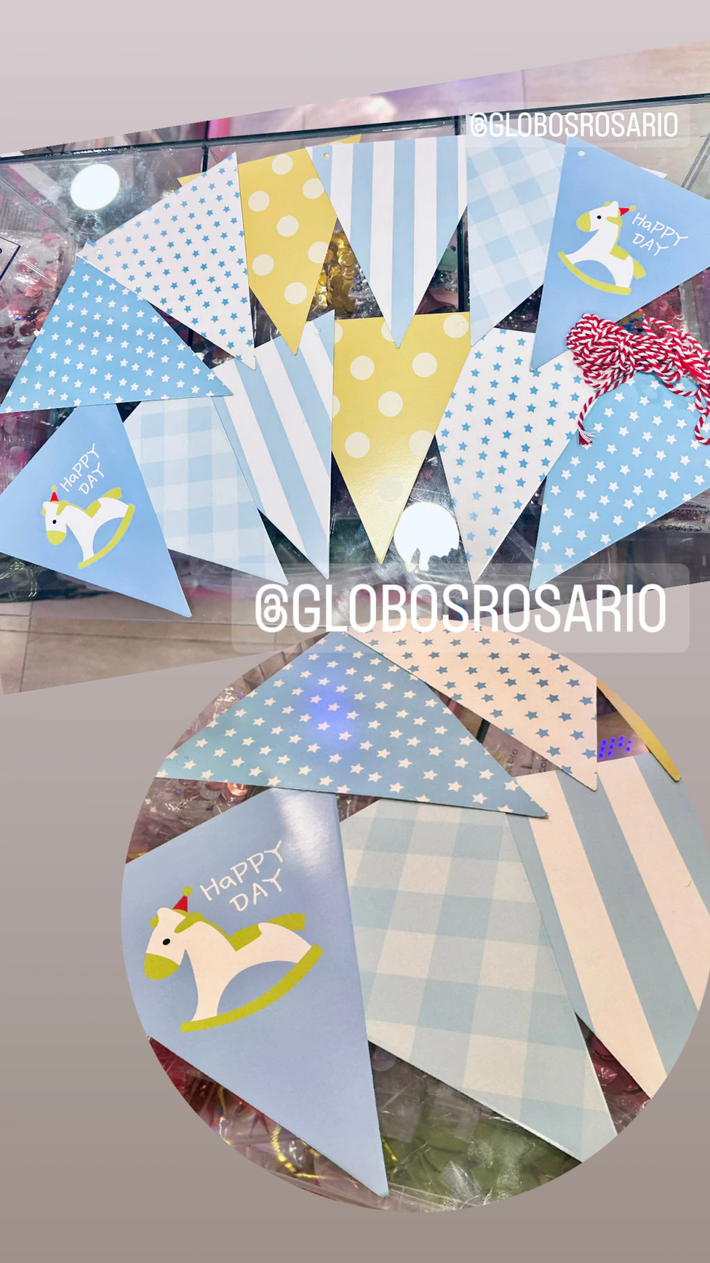 son 12 triángulos surtidos impresos para armar , incluye cordón para colgar