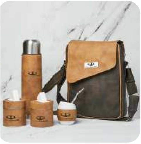 Material: cuerina.Set completo de mate con bombilla, dispensers para la yerba y el azúcar y termo de litro.