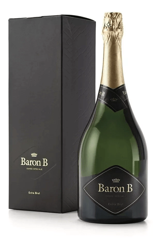 Baron B Extra BrutMagnum (1.5lts)Presentación en EstucheLa elegancia aportada por el Chardonnay y la intensidad otorgada por el Pinot Noir conjugan en un assemblage perfecto y armonioso.Un reposo prolongado sobre levaduras hace de nuestro Extra Brut, un espumante sofisticado, fiel reflejo de la refinada personalidad de Baron B. Sus finas y persistentes burbujas, de color amarillo con destellos ocres, revelan autenticidad y delicadeza.Aromas expresivos a damasco y frutos cítricos se combinan con notas de pan tostado y frutos secos, autores de su complejidad. Su final de boca es sensual y de gran persistencia.