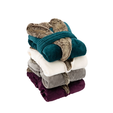 Bata Flannel Linea Kimono C/Cuello - Violeta