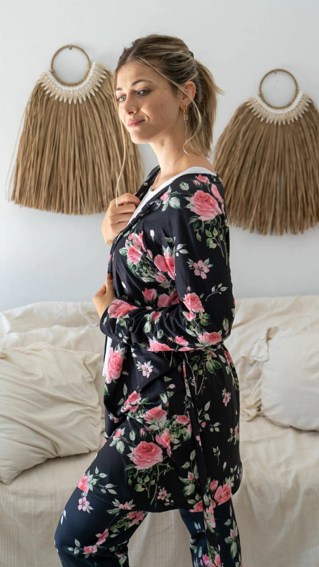 Bata elaborada en modal soft, estilo shabby con estampa de diseño de autor.