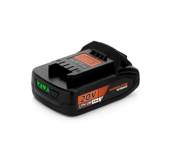 Batería de Ion-Litio Hamilton 20v 2.0 AmperesBateria de Ion-LitioTension de bateria 20 V.Indicador de carga con luz led.Máximo rendimiento.SKU:ULT101
