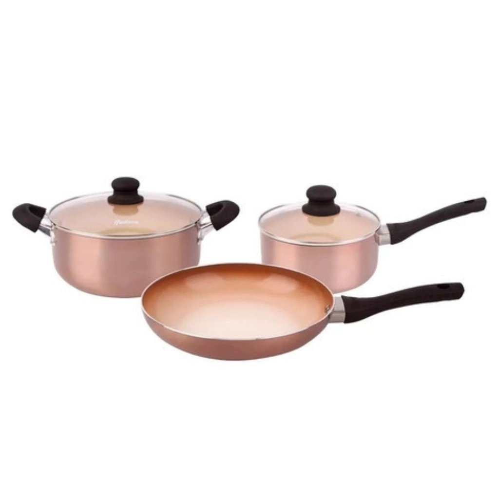 BATERÍA DE ALUMINIO CON ANTIADHERENTE CERAMICO DEGRADADO POR 5 PIEZAS