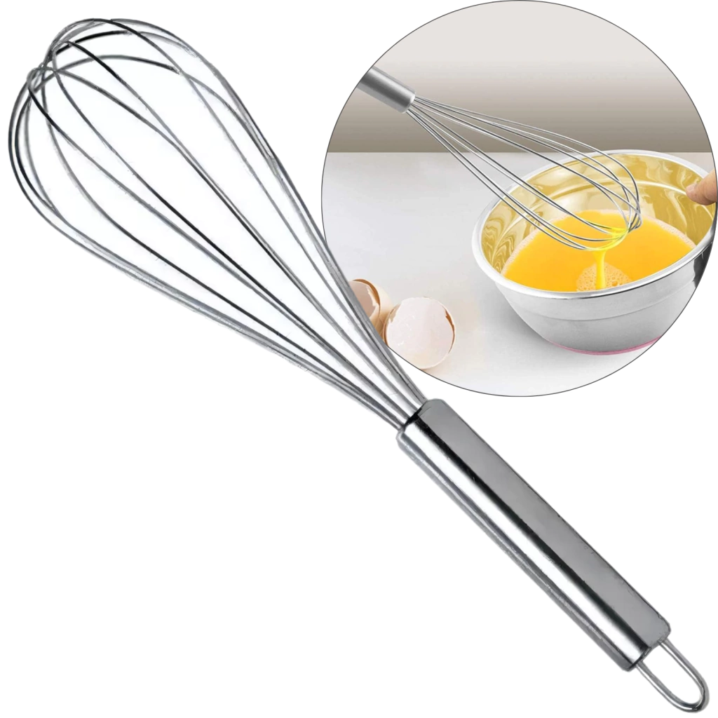 Fabricado en acero inoxidable de alta calidad, resistente a la corrosión y apto para uso intensivo. Su diseño permite batir de manera uniforme, ideal para incorporar aire en mezclas como claras de huevo, cremas y masas ligeras.