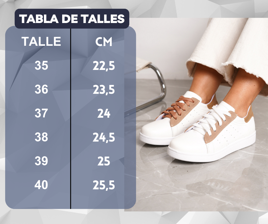 Hermosas Zapatillas combinadas, de punta redonda acordonada, ¡súper cómodas! Podes usarlas con cordones blancos o cordones en suela, ambos quedan divinos!