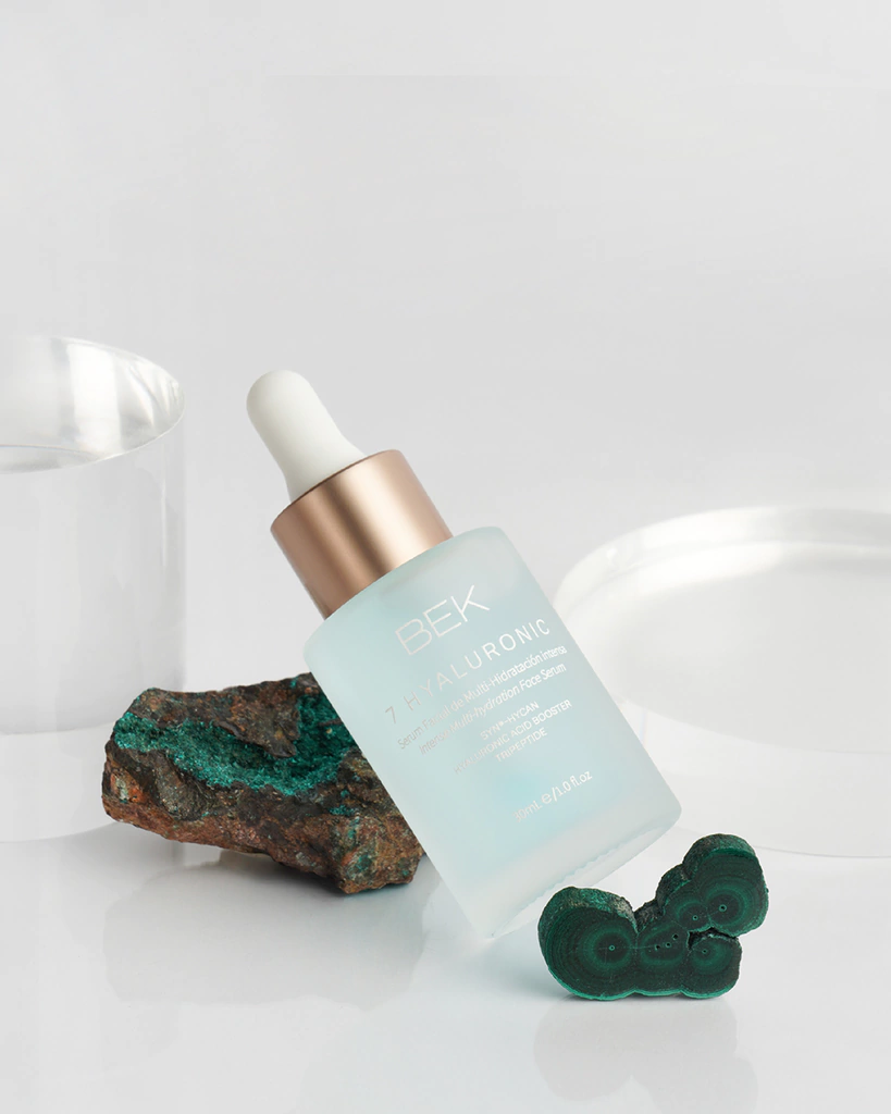 Ingredientes: Aqua, Propanediol, Glycerin, Malachite Extract, Phenoxyethanol, Sodium Hyaluronate*, Hydrolized Sodium hyaluronate, Hydrolyzed Hyaluronic Acid, Panthenol, Hydroxyethylcellulose, Allantoin, Ethylhexylglycerin, Pentylene Glycol, Sodium Hyaluronate Crosspolymer, Tetradecyl Aminobutyroylvalylaminobutyric Ura Trifluoroacetate, Sodium AcetylatedHyaluronate, Magnesium Chloride, Citric Acid. *(Low, medium and high molecular weight)