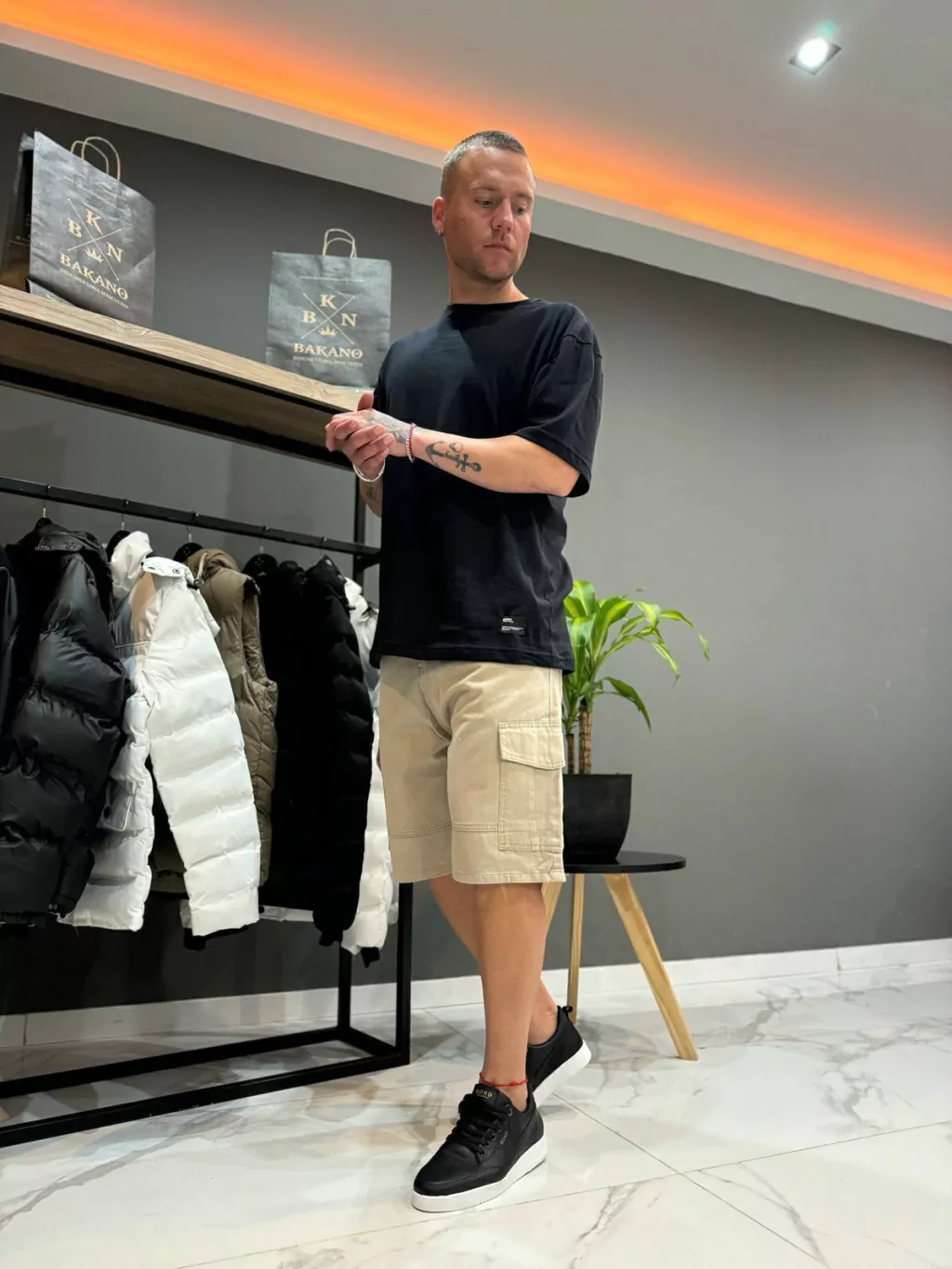 La bermuda se caracteriza por ser de gabardina rigida premium, con cierre en cremallera y boton en cintura, costuras al tono de la base y calce regular. avios niquel y aplique BOND en bolsillo plaque traseroeste articulo viene en beige y verde militar.