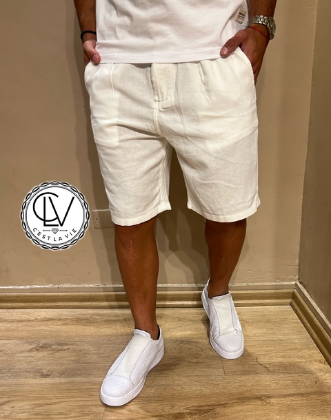 Bermuda Mom De Lino , Color Blanco , Super comoda y Fresca , Ideal Para Armar un Outfit Bien Veraniego .