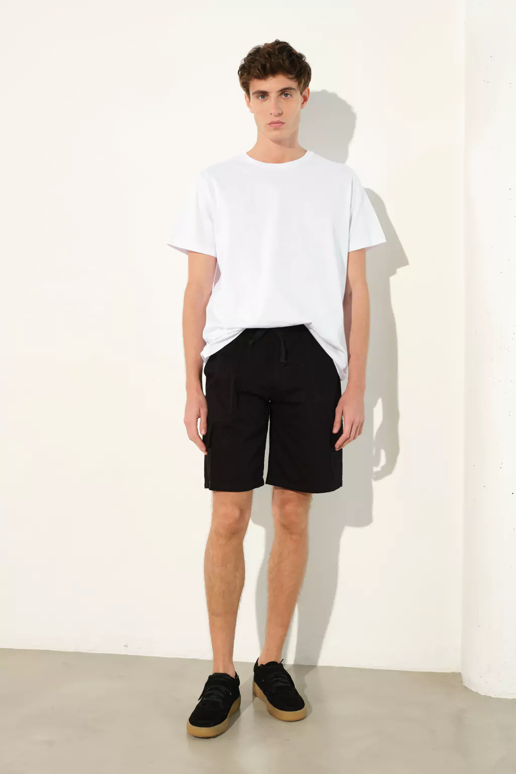 Bermuda Sidney: comodidad y estilo en un solo diseño. Confeccionada en gabardina de alta calidad, esta bermuda cuenta con bolsillos laterales prácticos para tus objetos personales. Su cintura incorpora elástico y cordón de ajuste para un calce perfecto y adaptable.