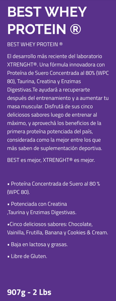- Deportistas de Todos los Niveles: XTRENGHT BEST WHEY es perfecta para cualquier deportista que busque aumentar su ingesta de proteínas, mejorar su rendimiento y facilitar la recuperación.