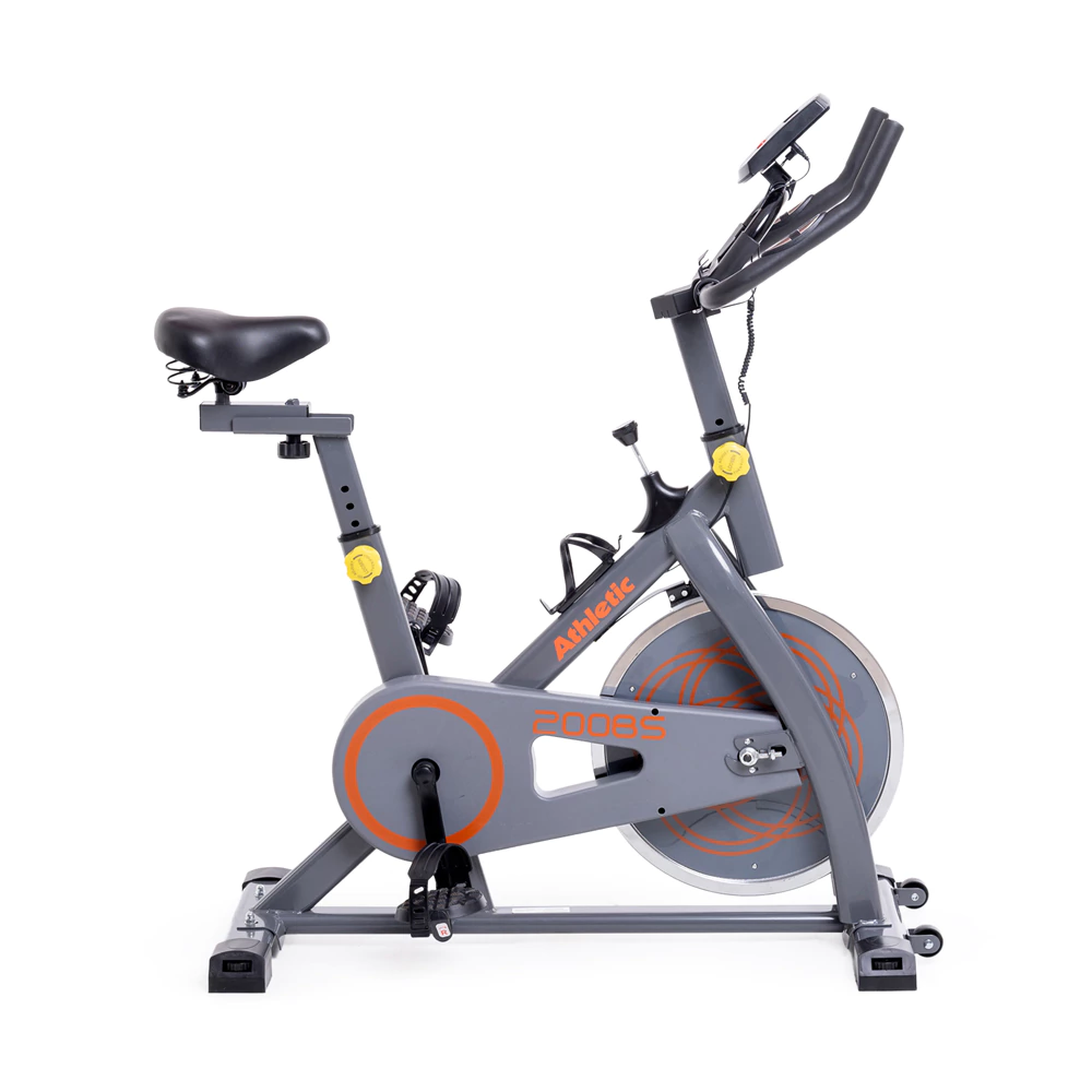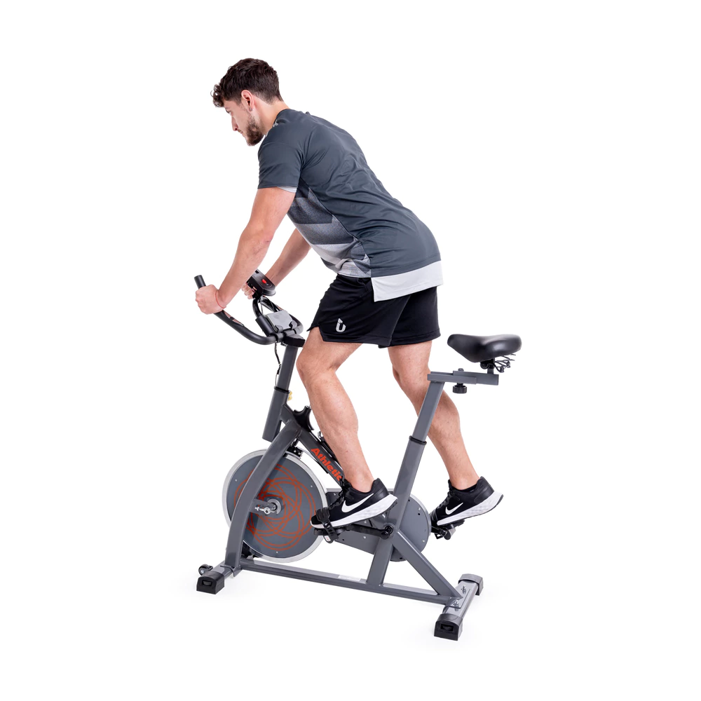 La SPINNING BIKE - 200BS cuenta con un volante de inercia robusto y un sistema de tensión avanzado paraentrenamientos intensos. Su innovador sistema de resistencia garantiza transiciones suaves, proporcionandorecorridos desafiantes pero cómodos.Características generalesUsuario: Peso máximo soportador de 125 kg. Altura máximade 1,9 m.Transmisión: Correa.Resistencia: Mecánica | Pastilla de freno.Disco de inercia: 8 kg.Manubrio: Regulación vertical.Asiento: Con ajuste horizontal y vertical. Pedales con ajustede seguridad. Monitor electrónico: Muestra velocidad,distancia, pulso, tiempo y calorías.Dimensiones: 104x48x108 cm. Peso del producto: 28 kg.