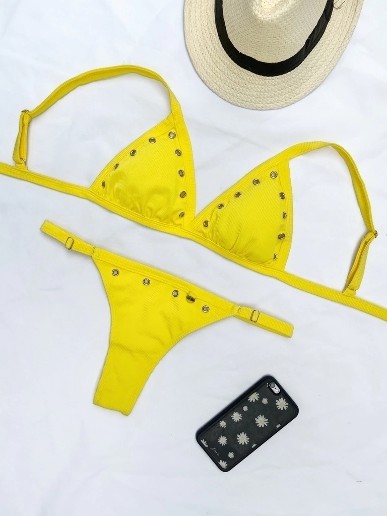 La bikini Bowie es de lycra tipo morley, con detalles de arandelas en corpiño y less.