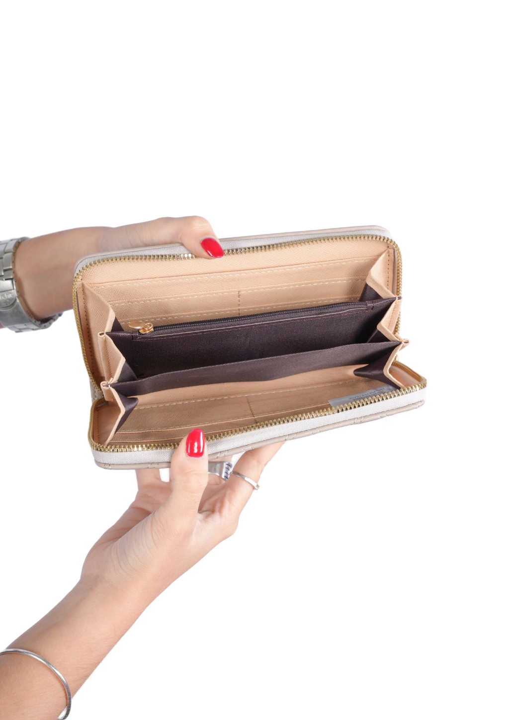 - Compartimientos: Múltiples compartimentos internos con bolsillos con cremallera para monedas y espacio para tarjetas y billetes.