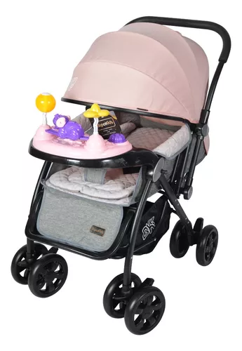 PESO MAXIMO SOPORTADO 25 KG*Coche Cuna reversible*BANDEJA INTERACTIVA juegos interactivos y sonido*Toldo extra largo con visor*Apoya pie Regulable*8 ruedas*Mosquitero*Manija Rebatible*Canasto Inferior*2 ruedas con freno y trabas para pisos que patinan* Asiento con tela suave