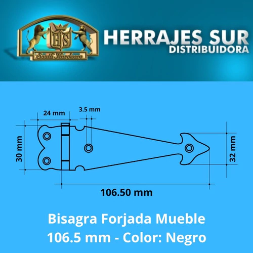 Bisagra Estilo Colonial Hierro Negro Tamaño Mediana