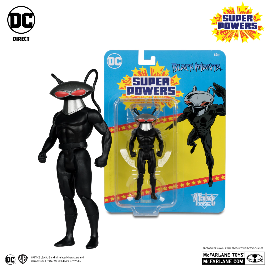 Black Manta (traje negro) SuperpoderesMarca: DC Super PowersGénero: CómicsTipo de producto: Figura de acciónSerie: Reserva ahoraEl mayor enemigo de Aquaman es el azote de los siete mares, David Hyde, cuyo corazón es tan frío como las profundidades del océano que caza.Características del producto:Figura clásica de DC SUPER POWERS™ a escala de 4,5″ con articulaciónContinuando con el legado de la querida línea DC SUPER POWERS™, llega un nuevo lote de tus héroes y villanos favoritos.BLACK MANTA se presenta en un blíster con el tema DC SUPER POWERS™Colecciona todas las figuras y vehículos de McFARLANE TOYS™ DC SUPER POWERS™