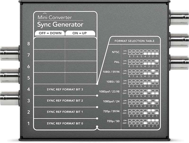 BLACKMAGIC Mini Converter - Sync Generator - CONVMSYNCDescripciónIncluye 6 salidas de referencia de video estabilizadas por cristal, para referenciar todo el equipo de video de su estudio en estándares de televisión de alta definición Tri-Sync o Blackburst de definición estándar.Es perfecto para estudios pequeños y transmisiones al aire libre.MAS INFORMACION:https://www.blackmagicdesign.com/products/miniconverters/techspecs/W-CONM-15GARANTÍA OFICIAL: 1 AÑONUESTROS SERVICIOSMás de 35 años en el mercado.Líder de soluciones tecnológicas en Argentina.Contamos con servicio técnico y brindamos el mejor servicio postventa.Centro de reparación en nuestras oficinas.Ofrecemos Garantía en todos nuestros productos.Showroom en Ciudad Autónoma de Buenos Aires.