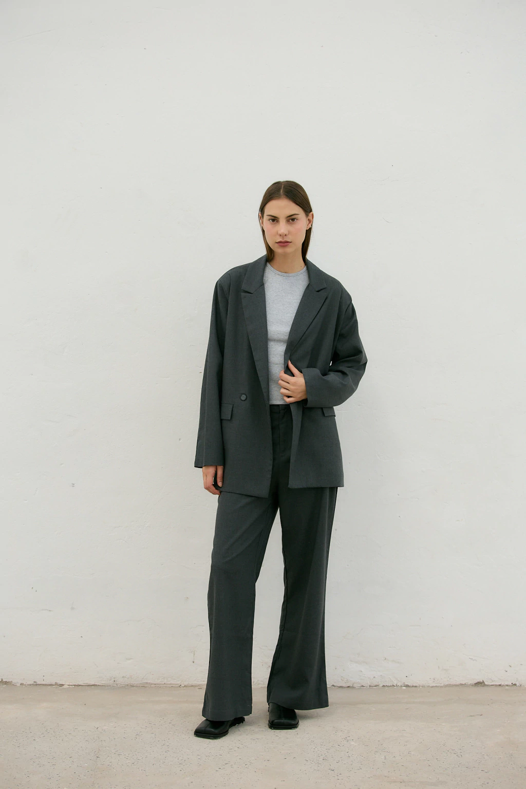 Blazer Carrie color gris melange, para nosotros es el clásico que no te puede faltar y que nunca te va a fallar. Confeccionado en sarga de algodón. Interior forrado, tiene hombreras y es de calce oversize. Bolsillos ojal en frente, opcional la tapa para afuera.Perfecto para combinar con el pantlón sastrero Carrie.MEDIDAS:Las medidas estan tomadas sobre la prenda apoyada en una superficie plana.Referencias: Josefina mide 1,74Medidas en centímetros:TALLE 1:Ancho de busto: 54 cmAncho de hombros: 45 cmLargo de manga: 60 cmLargo total: 72 cmTALLE 2:Ancho de busto: 56 cmAncho de hombros: 47 cmLargo de manga: 61 cmLargo total: 74 cm