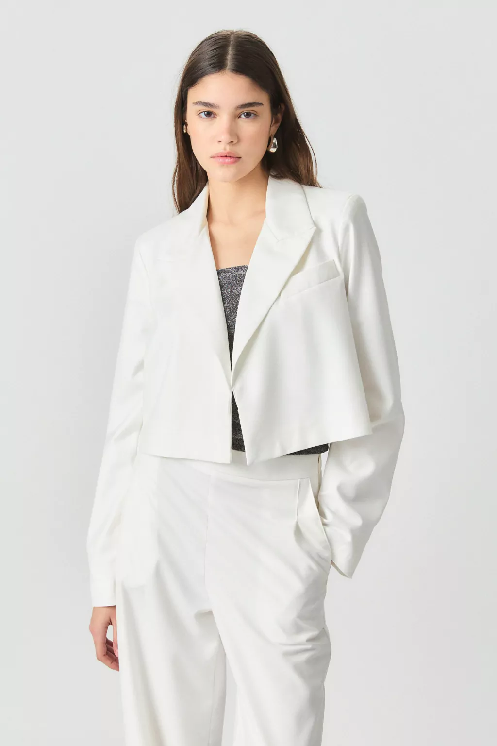 Blazer sastrero cropped con cuello solapado y un bolsillo ojal decorativo en el pecho. De manga larga, es ideal para añadir estilo a tus looks.