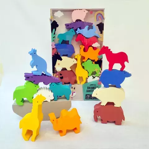 🦒🐘🦓🦁 12 Animales + 1 Base Movil, donde cada niño puede intentar mediante el equilibrio subirlos todos arriba! Ideal para estimular la motricidad fina y la concentración!