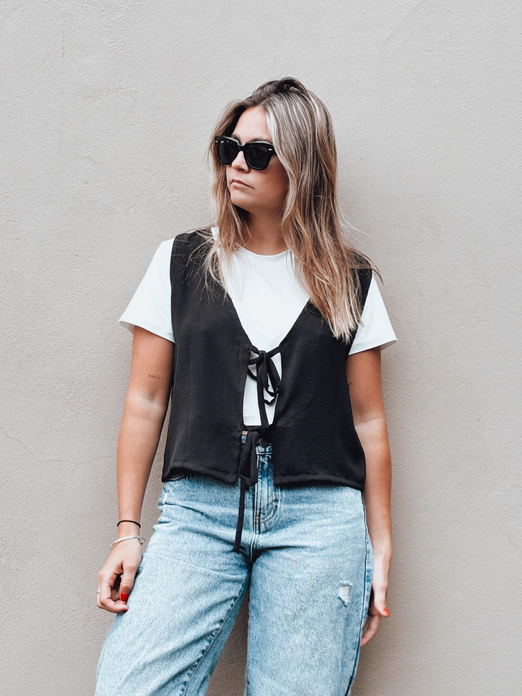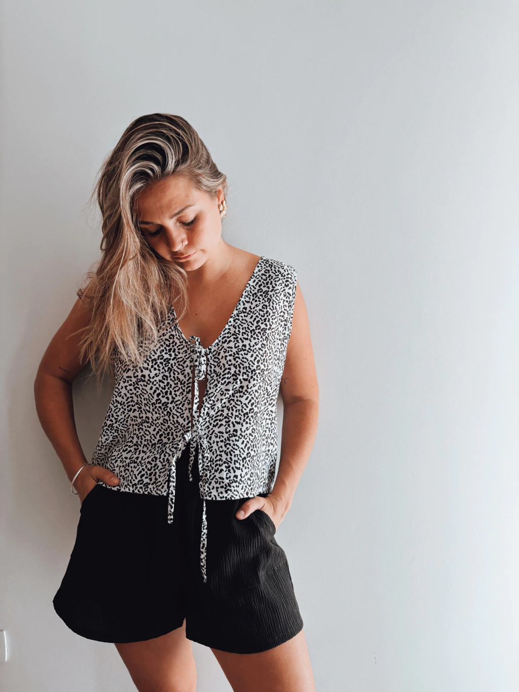 Blusa 3 usos!- como chaleco (podes superponerla con una remera abajo)- atada en el frente para un look mas sexy- atada por detrás para mostrar la espaldaConfeccionada en cey (lisas) y seda lavada (animal print), talle único.MEDIDAS:Ancho sisa: 50cm / Ancho cadera: 50cm / Largo total: 50cm