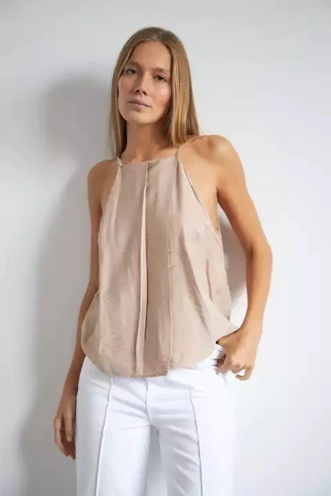 Blusa de lino texturado, de corte holgado, lleva de detalle tabla al frente y botón para el acceso en la espalda. El largo es a la cadera, viene en unos colores muy hermosos.