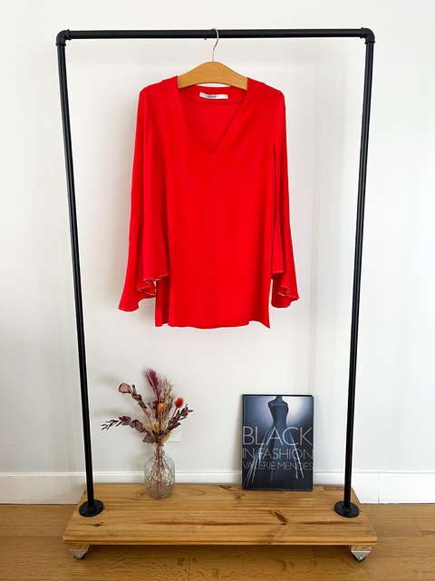 HERMOSA BLUSA ROJA !!!MEDIDAS:HOMBRO A HOMBRO 41CMSISA A SISA 44CMLARGO TOTAL 71CMCOMPOSICION: 100% VISCOSA