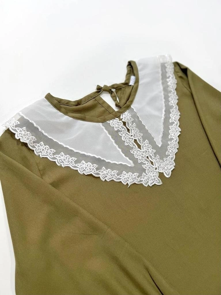 Blusa manga larga con elásticos en puño y aplique en cuelloGénero:  Twill rayón.