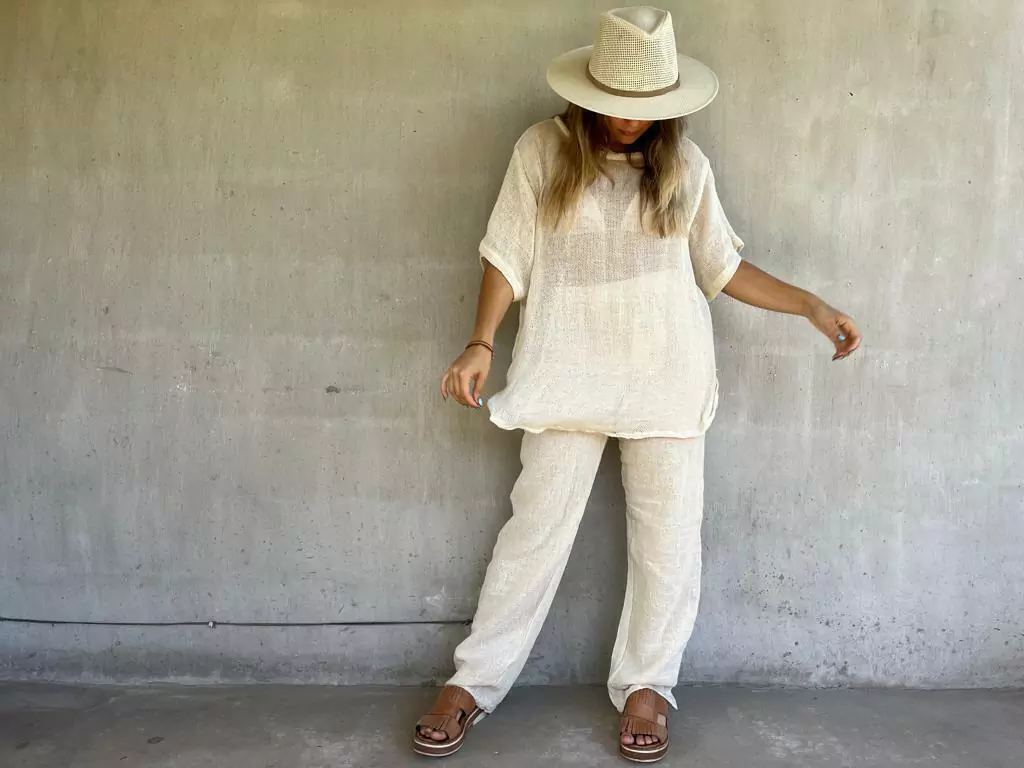 Tejidos en hilo 100% algodón, en telares artesanales propios.