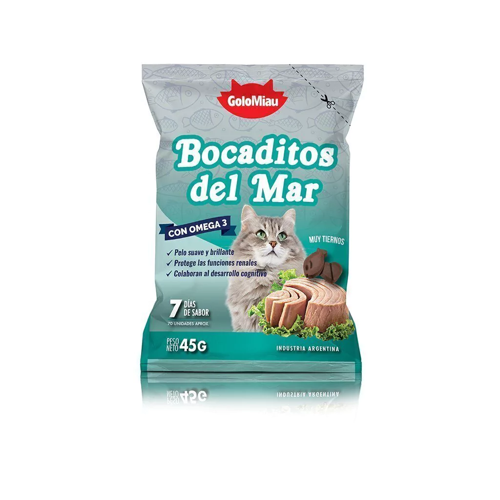 Bocaditos semihúmedos y blanditos sabores del Mar.Además cuenta con el aporte de Omega 3, que mantiene el pelo suave y brillante de tu gato, protege las funciones renales, y colaboran al desarollo cognitivo.