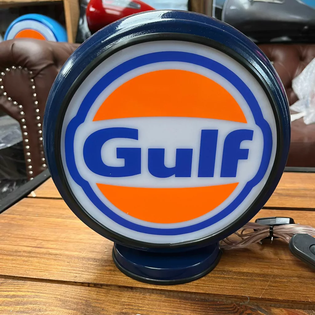 Recreacion de bocha de surtidor antigua, realizada en chapa comn frentes traslujcidos retroiluminados, incluye lampara, base, tecla y enchufe,diametro 20cm