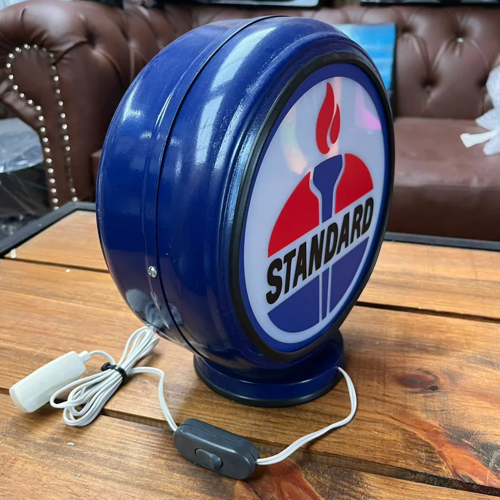 Recreacion de bocha de surtidor antigua, realizada en chapa comn frentes traslujcidos retroiluminados, incluye lampara, base, tecla y enchufe,