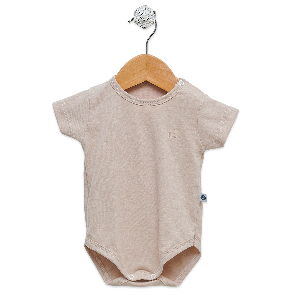 Body básico color arena liso y logo. En algodón pima importado. ¡Suavidad y comodidad para los más peques!