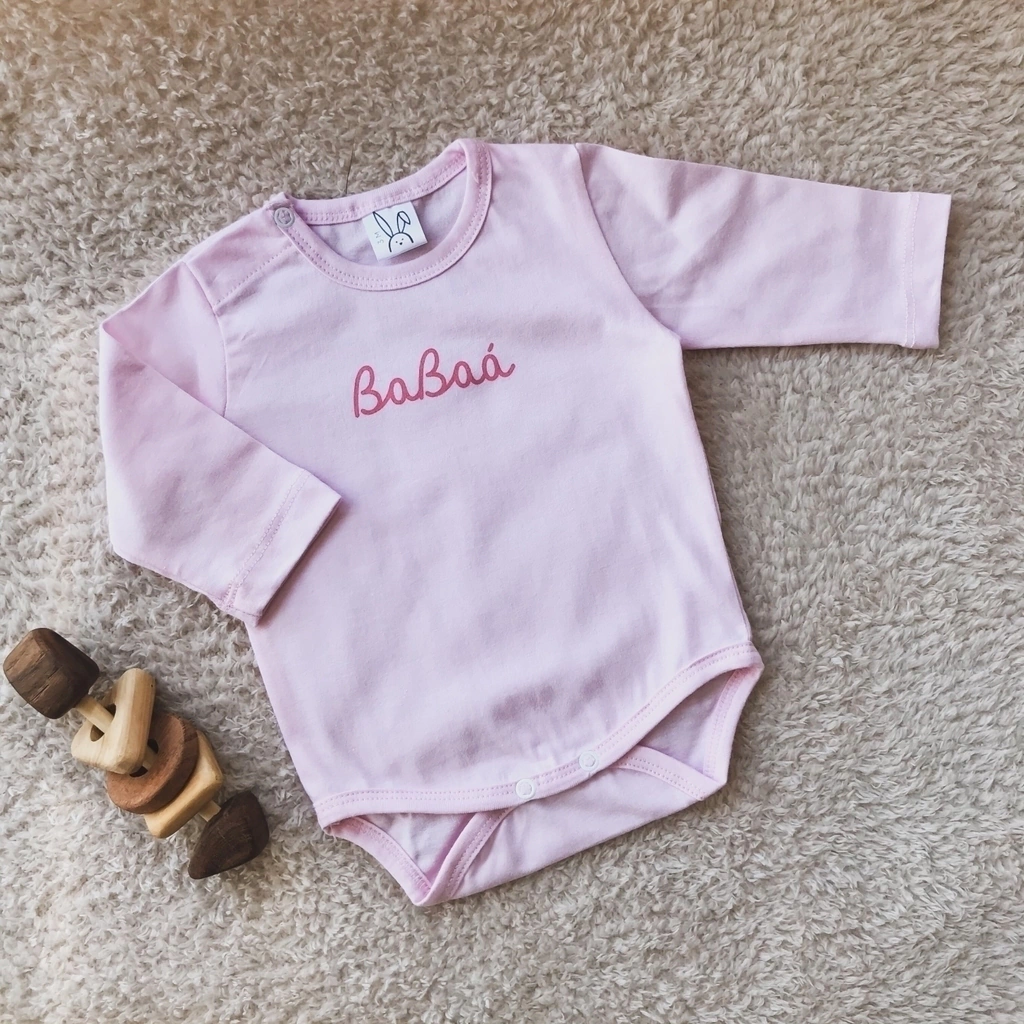 Body básico BabaaMaterial: 100% algodónColor: rosa bebeDetalles: estampa con sistema serigrafiado (con pintura al agua). No se despega, despinta ni se daña con lavados o roce.Cuidados:Lavar a mano con agua fria. Planchar del lado del reves. No apoyar plancha sobre estampa.