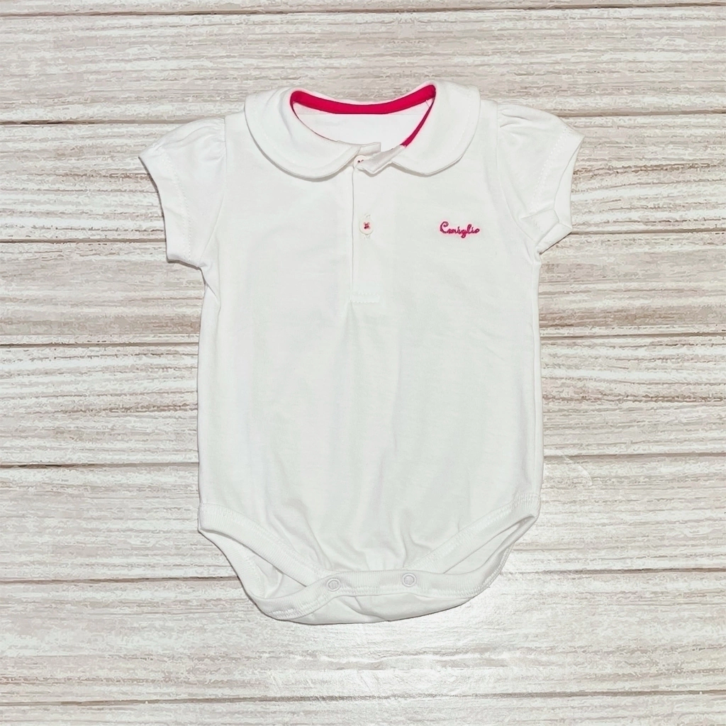 Body Manga corta de algodón, color Blanco.detalles de Bordado en Fucsia.GUIA DE TALLES EN LA ULTIMA FOTO