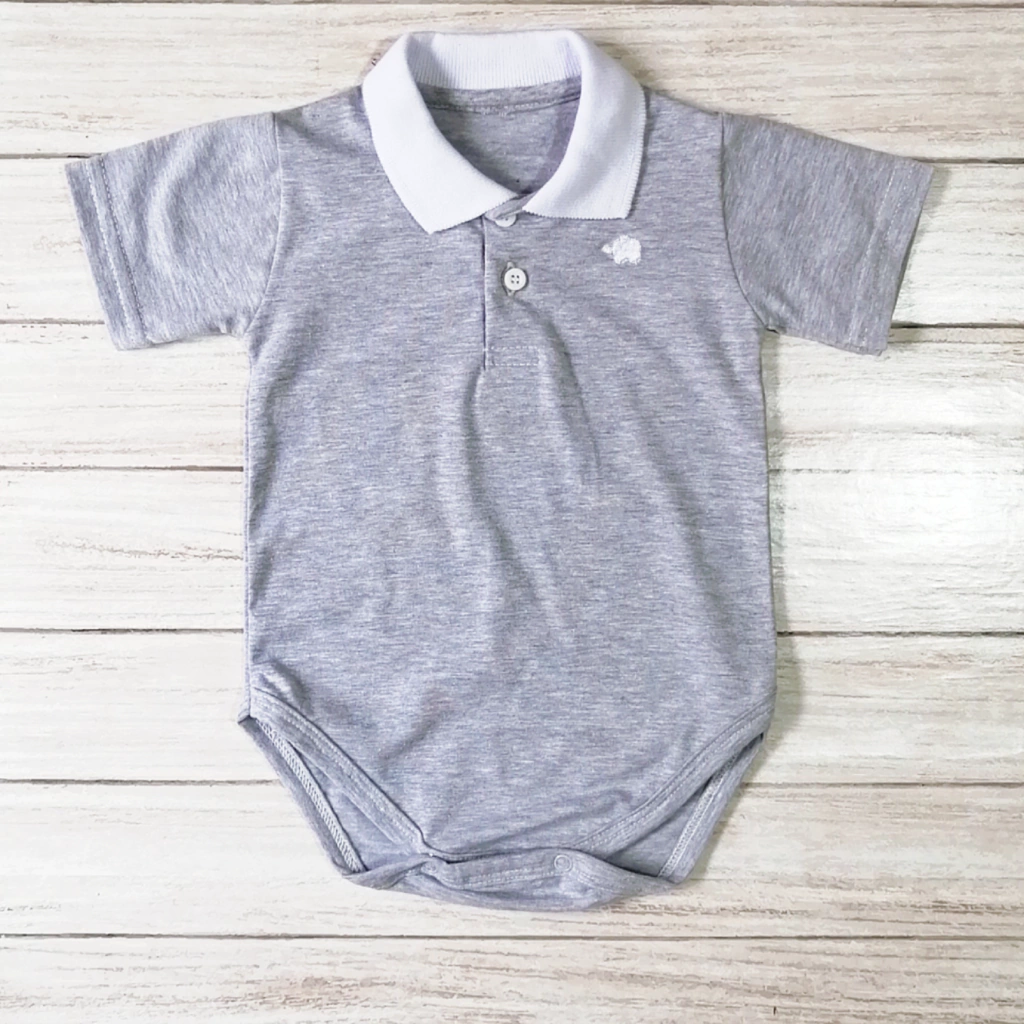 Body Chomba, en manga Corta.Color gris Melange.100 % algodón, con cuello Piqué en Blanco.una Prenda Ideal para vestir de una manera muySobriaa tu bebé!