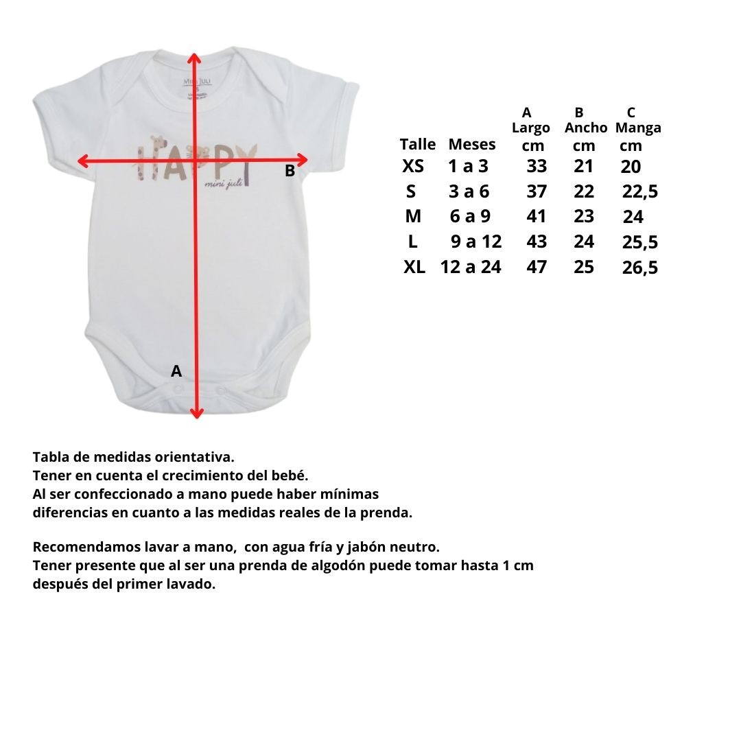 Body cuello americano, posee 2 broches metálicos al tono en el pañalero.