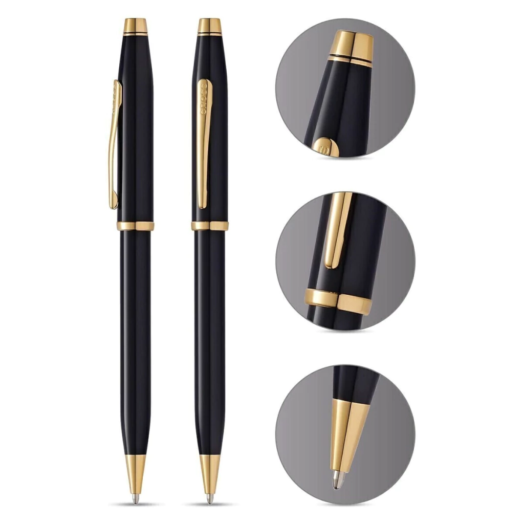 - Combina el diseño y la gracia del bolígrafo Classic Century con un aspecto más audaz y con un perfil más amplio.- Elegante acabado lacado negro multicapa con detalles chapados en oro de 23 quilates; precisión con un peso balanceado para una experiencia suntuosa y táctil.- Con un mecanismo de acción giratorio helicoidal para extraer/introducir la punta y lograr una escritura consistente y suave.- Incluye una punta negra y median con tinta especialmente formulada que fluye perfectamente.- Presentado en una caja de regalo de lujo Cross.