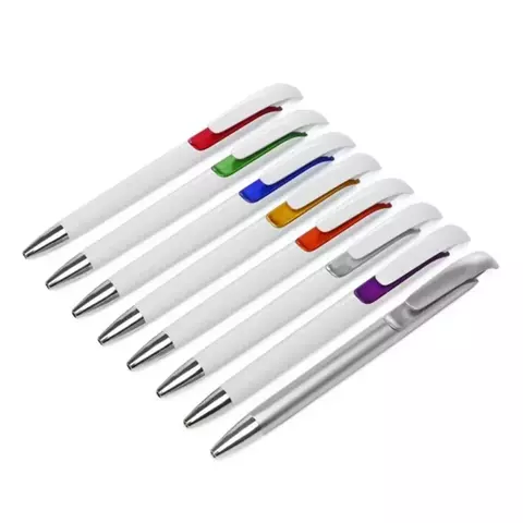 Cuerpo blanco con detalles en color bajo el clip.