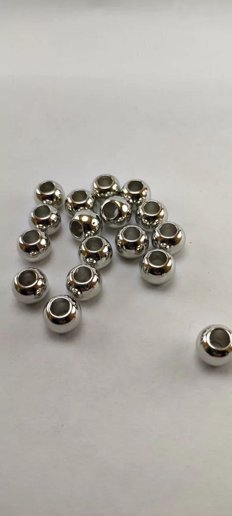 Cuentas plasticas abs.Color niquelado.Pase ancho para cordon.Precio por 25 gramos (120 piezas aprox)