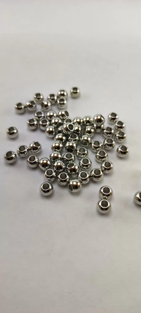 Cuentas plasticas abs.Color niquelado.Pase ancho.Precio por 25 gramos, 300 piezas aprox.