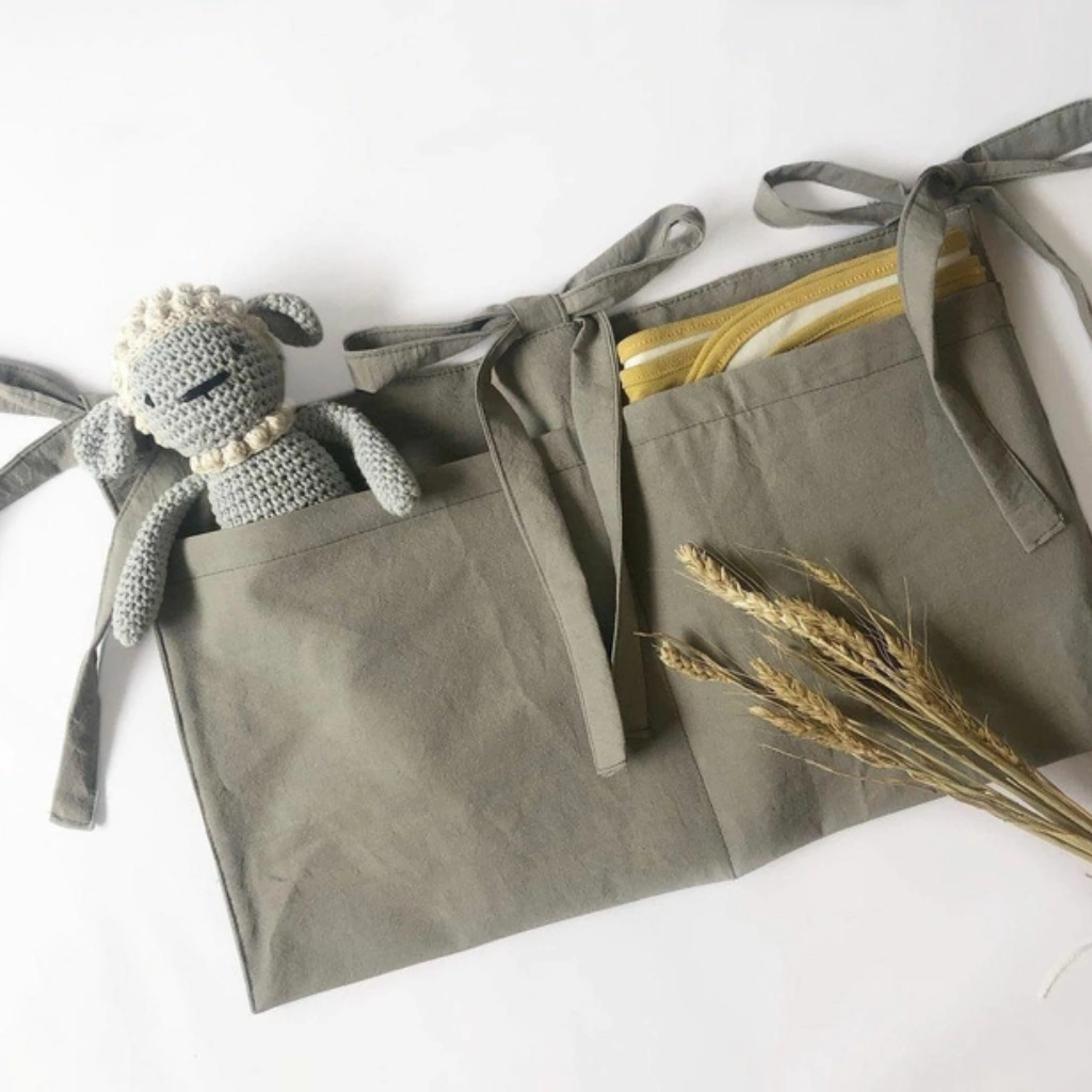 Nuestro bolsillero de cuna esta realizado en tusor 100% algodón, Posee dos espacios individuales.
