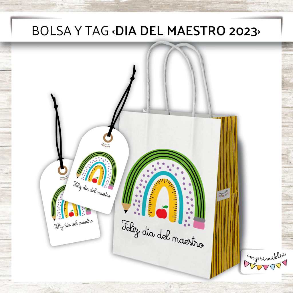 Bolsita y Tags Día del maestro 2023Contiene:-Bolsa para imprimirtamaño A4-TagsSe envía en formato pdf.No se puede modificar ni abrir en un programa de diseño.-------------------------------------------------------------------Antes de comprar te recomendamos leer lasPREGUNTAS FRECUENTESpara despejar tus dudas y evitar reclamos posteriores.-Está completamente prohibida la REVENTA o INTERCAMBIOde los kits de Imprimibles en plataformas de venta online o en redes sociales, sea este con o sin fines de lucro.