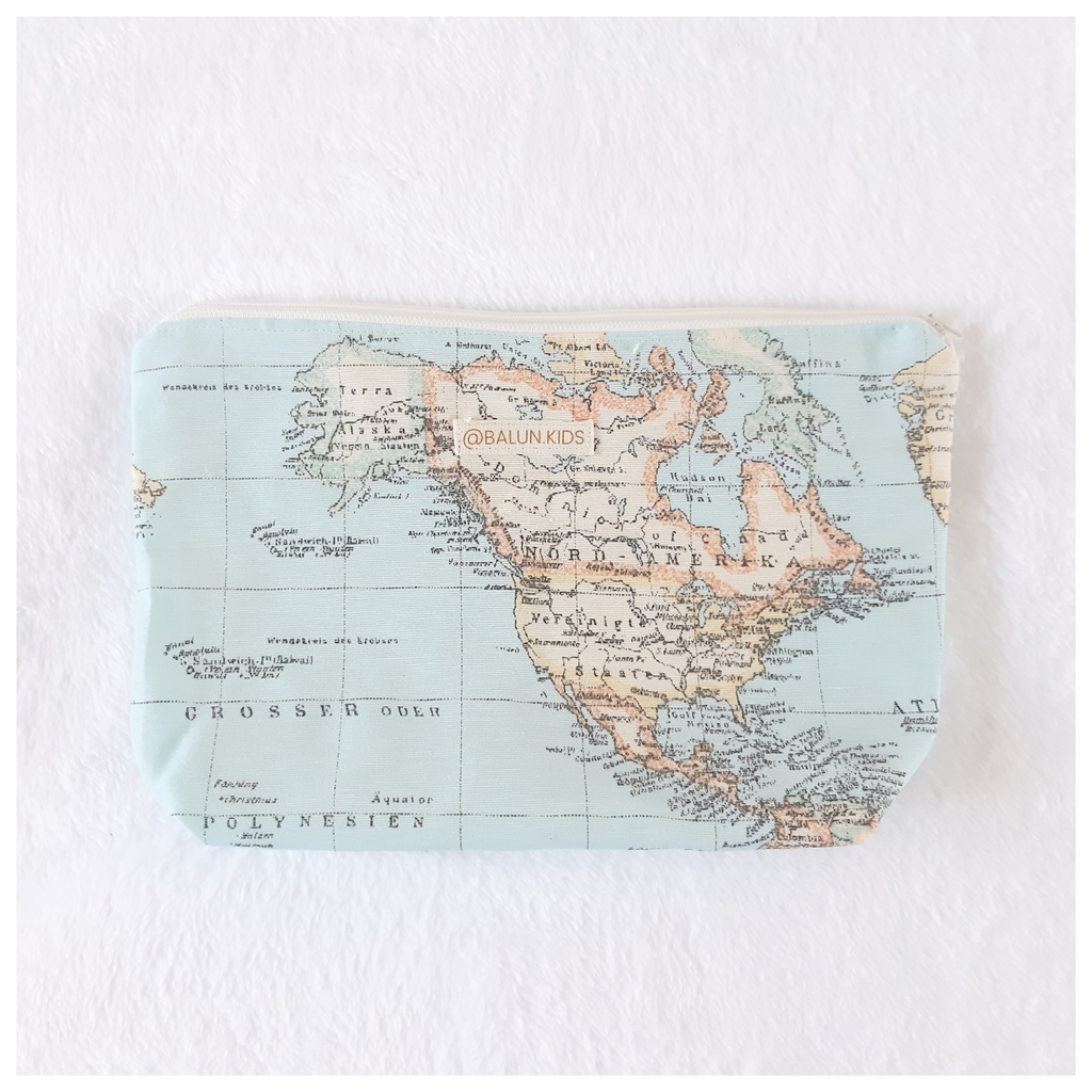 Bolsito tipo neceser de tusor texturado forrado en lienzo.