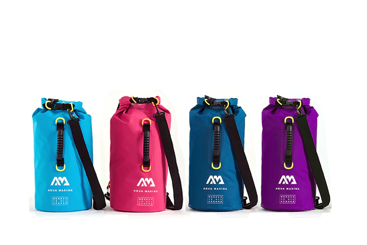 20L: B0304081 – 24 x 60cmTejido de PVC reforzado extra ligeroSistema de bloqueo plegable e impermeableDos correas de hombro incluidasDiseño de asa de transporte de gomaAnillos en D agregados diseñados para sujetar el bolso estanco de 2LtsAzul marino/Celeste/Fucsia/Violeta