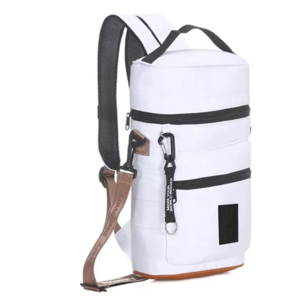 BOLSO MATERO MOCHILA DISCOVERYAmplio Compartimiento Principal.Bolsillo Frontal con Cierre.Matero apto para Termos de 1.5 Litros.Incluye Correa Desmontable y Regulable.Se puede usar como Mochila o Bolso.Con cierre metálico, y detalle de aplique con logo de la marca.Tiras de Mochila Ajustables Air Mesh.Asa Superior Reforzada.Medidas: 36cm x 24cm x 12cm