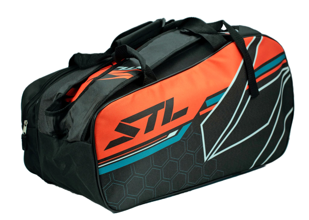 Bolso paletero Steel Custom, excelente modelo con el cual podes llevar tu equipo a cada partido o entrenamiento. Cuenta con un bolsillo lateral para una paleta. Amplio bolsillo principal para ropa, zapatillas, toallas, etc. Ademas, un bolsillo en la parte inferior del tamaño del largo para objetos mas pequeños como llaves, billeteras o similares.Gracias a sus correas acolchadas se puede transportar como mochila o bien con sus asas como bolso de mano. Un modelo practico, cómodo y con un diseño único!!Medidas:- 30 cm de ancho.- 57 cm de largo.- 30 cm de alto.